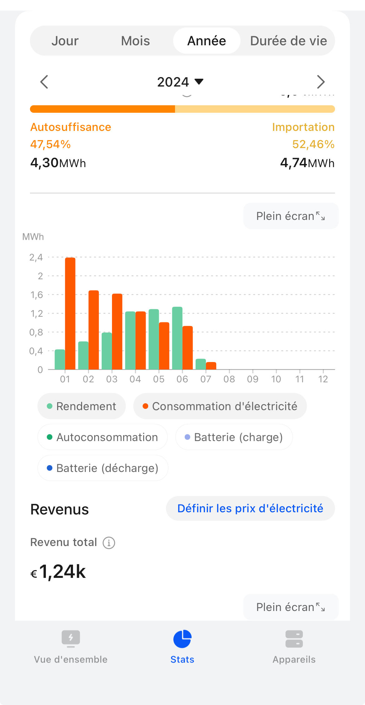 - Coût initial et subventions : Le coût initial de 8000 euros peut être réduit grâce aux subventions et crédits d’impôt offerts par l’État français pour les installations d’énergies renouvelables. En 2024, ces incitations peuvent couvrir jusqu’à 30% du coût total, ce qui réduit l’investissement initial à environ 5600 euros.